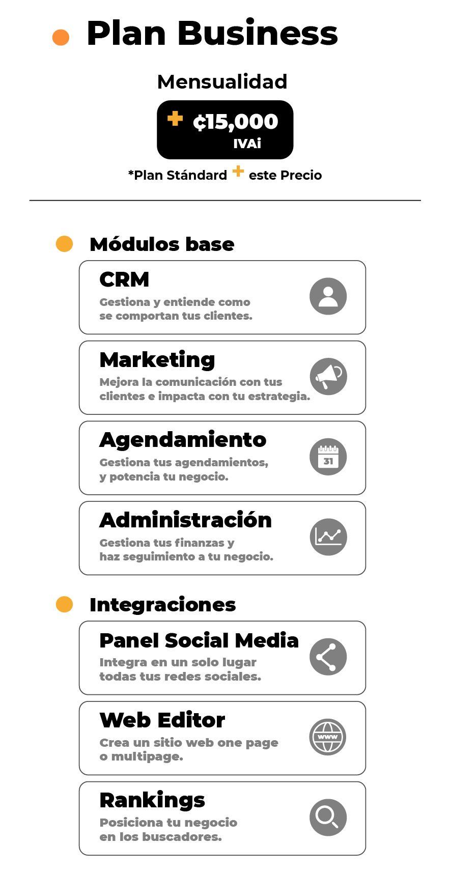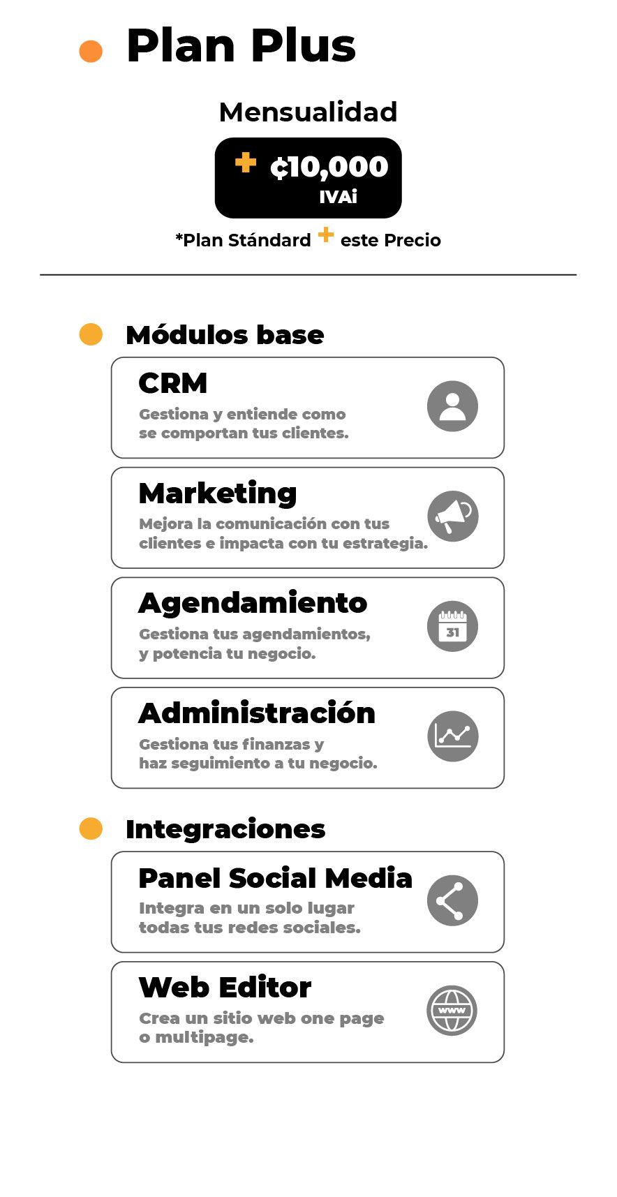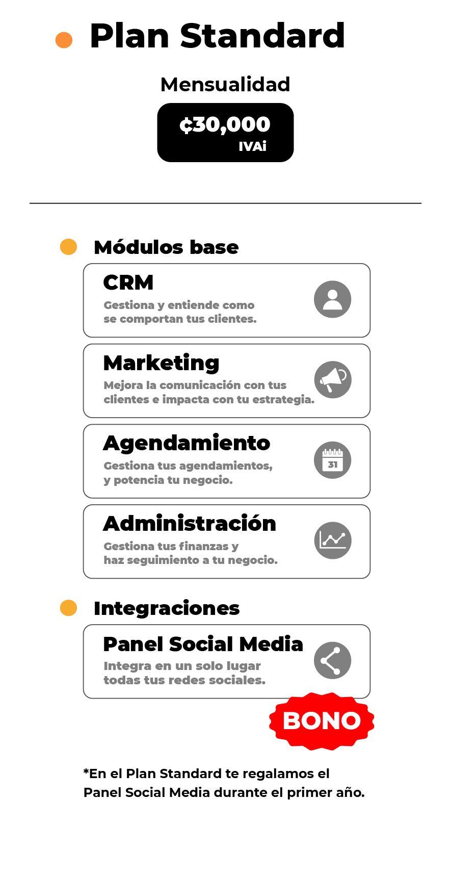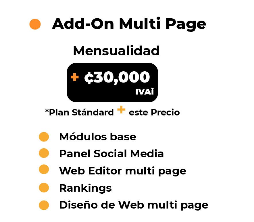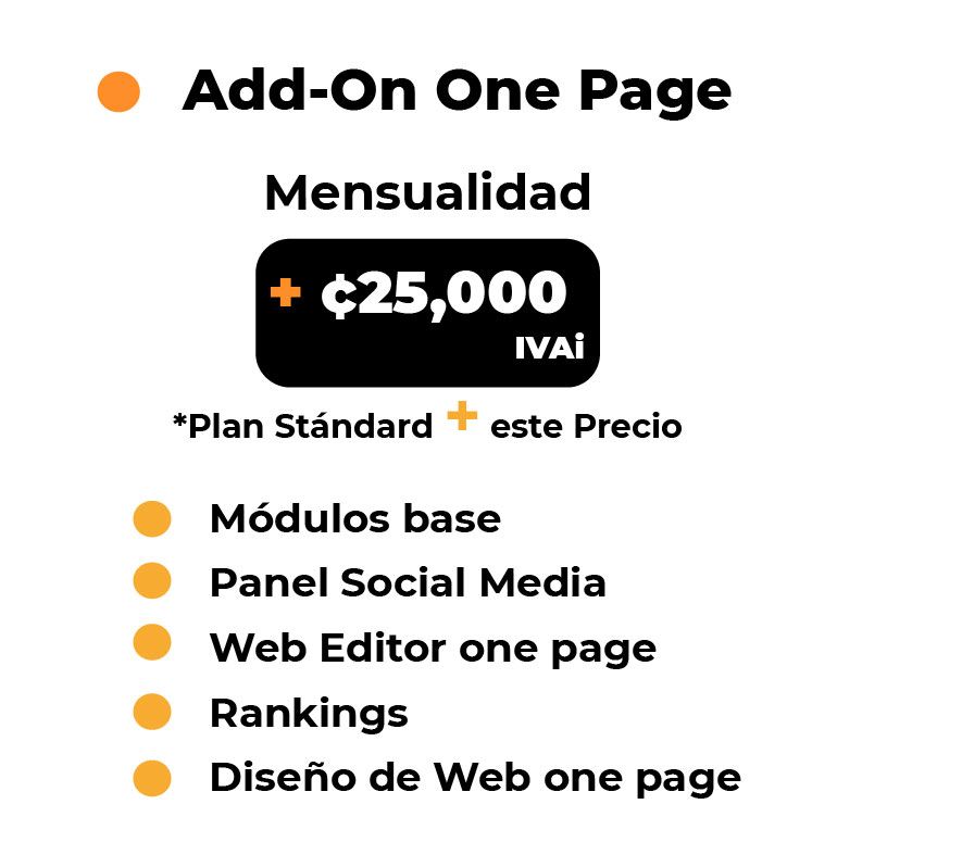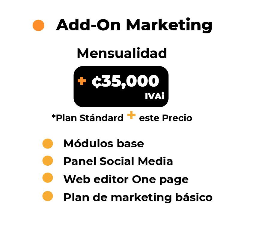 *** A cada Add-On se le suma obligatoriamente el precio de ¢30,000 IVAi del Plan Standard.